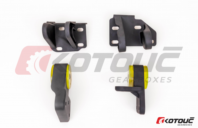 The mounts are designed to fit the original silenblocks. Alternatively any aftermarket silenblock option that is designed for the GTIR is possible to install. The silenblocks in the photo are for illustration on and not included in the price of the kit.
